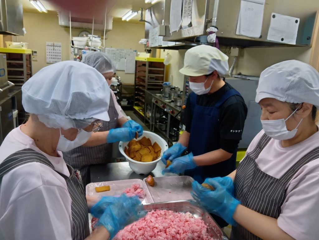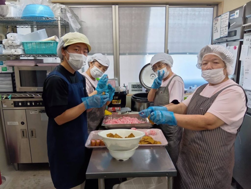 なんだかんだと厨房メンバーと一緒になっていなり寿司を作っていました。