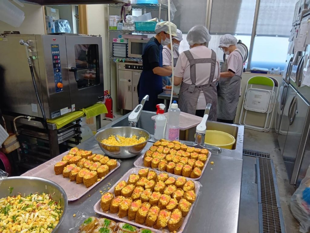 今月はなんと施設長がメニューなど考案し、厨房メンバーを一緒に完成しました。