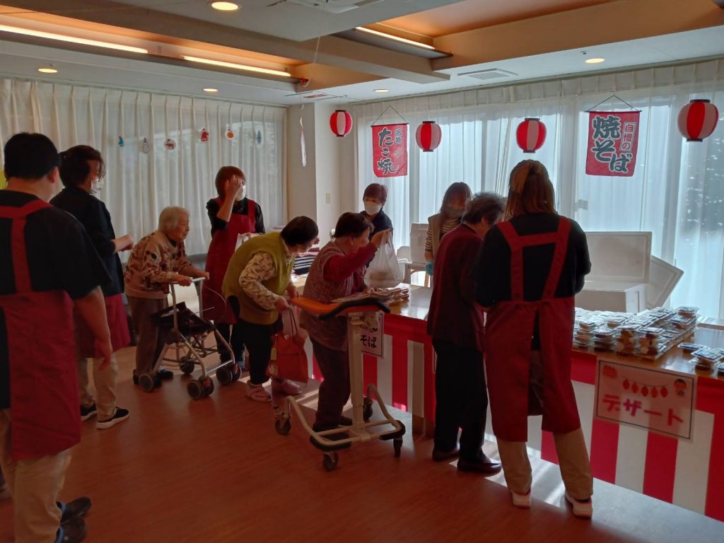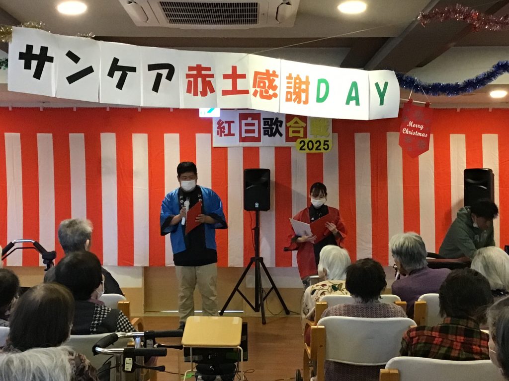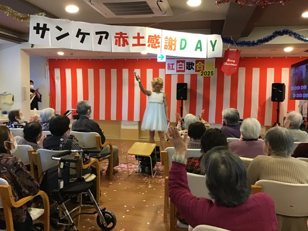 屋台メニューで食事を楽しんでいただき、午後からはちょっと早いですが、紅白歌合戦を行いました。この紅白歌合戦は利用者様が審査員となり、実際に投票していただきました!紅組も白組も気合い入ってます。