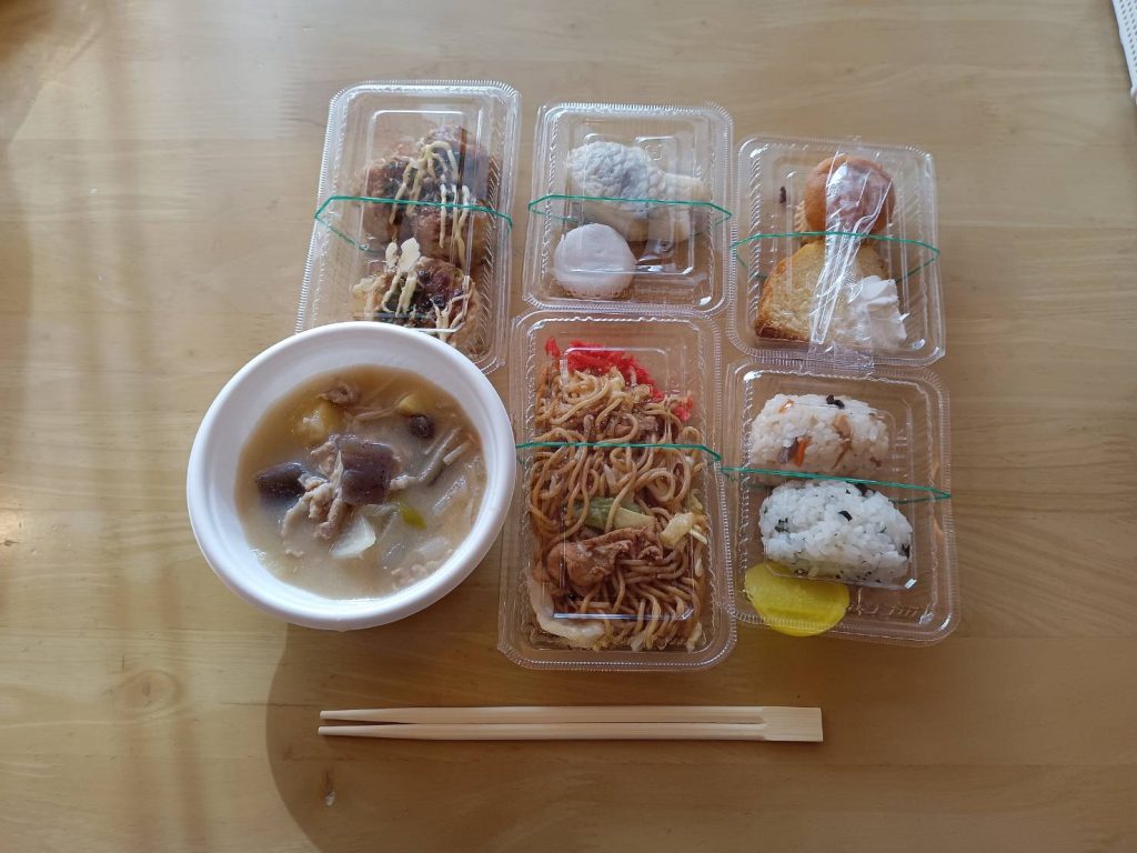 メニューは焼きそば・たこ焼きとお好み焼きペアセット・炊き込みご飯・具たくさん豚汁・デザートをご用意。