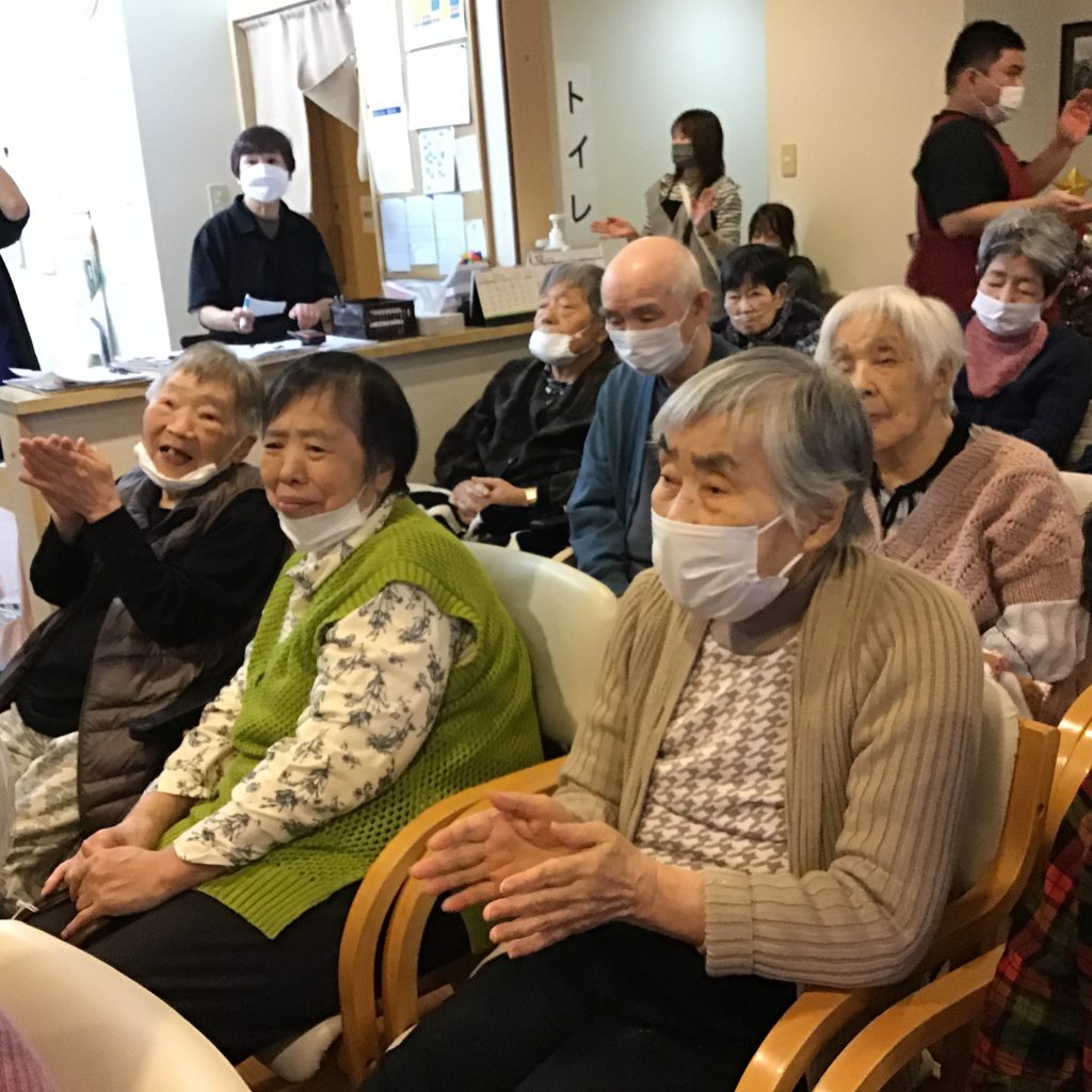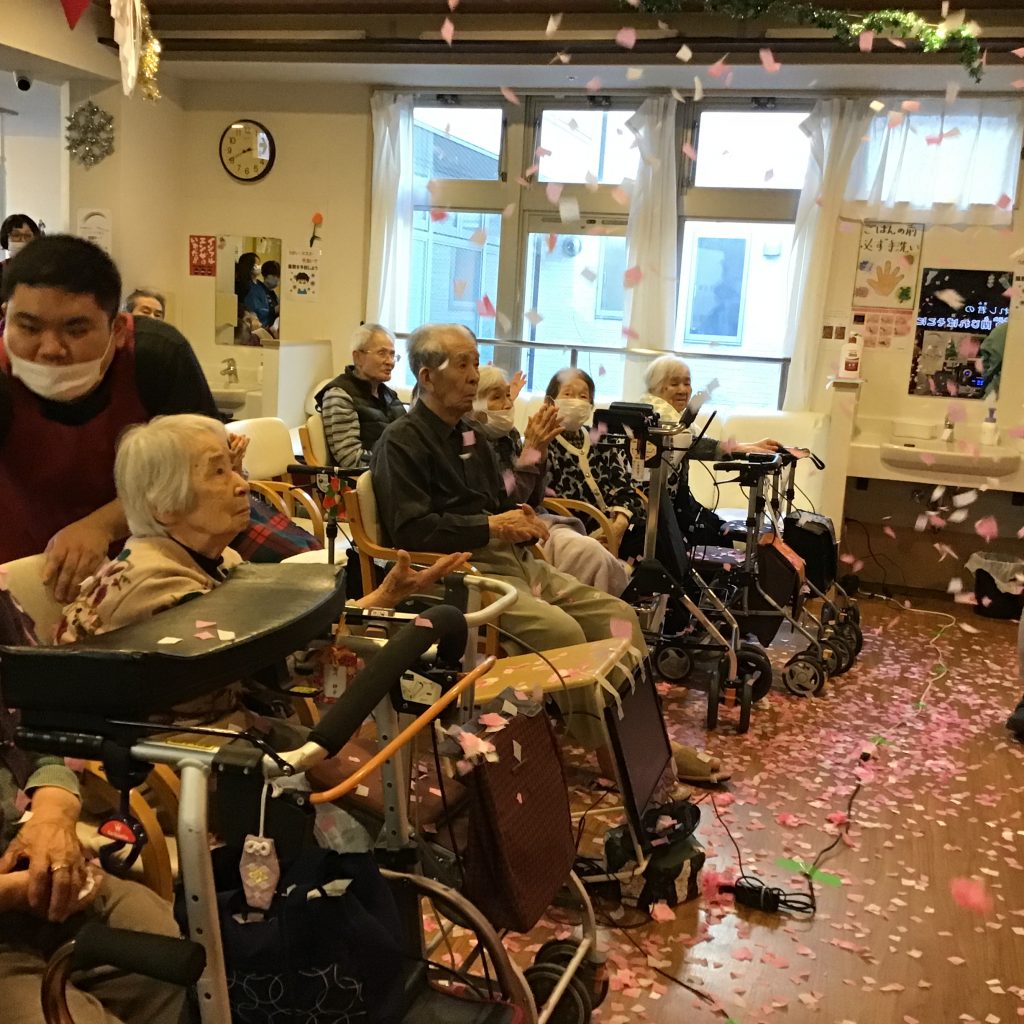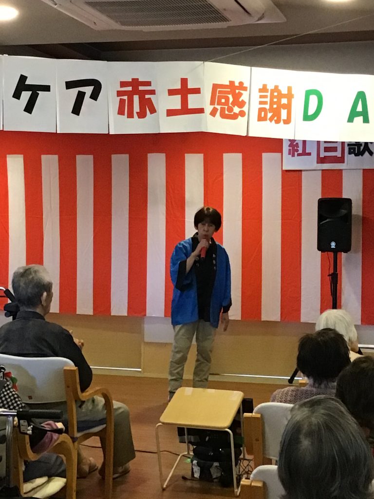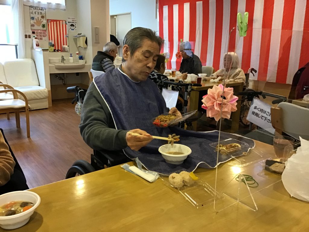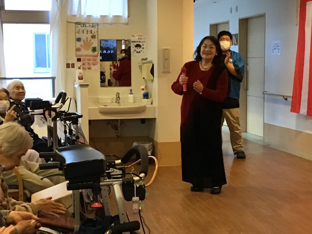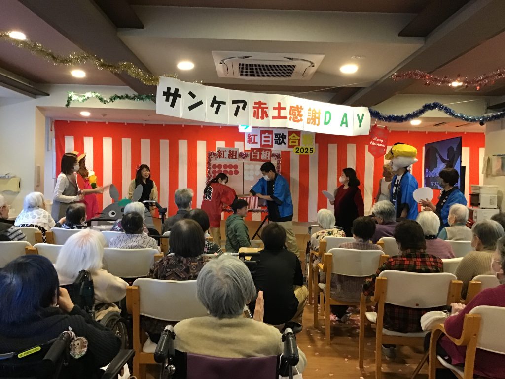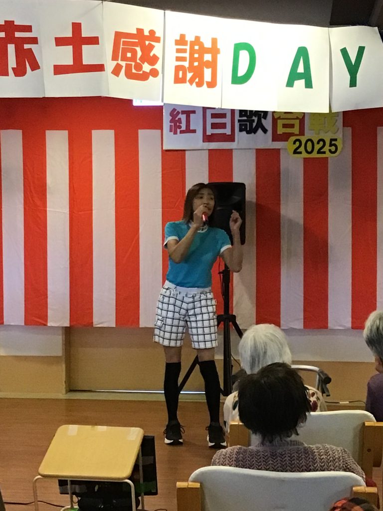屋台メニューで食事を楽しんでいただき、午後からはちょっと早いですが、紅白歌合戦を行いました。この紅白歌合戦は利用者様が審査員となり、実際に投票していただきました!紅組も白組も気合い入ってます。