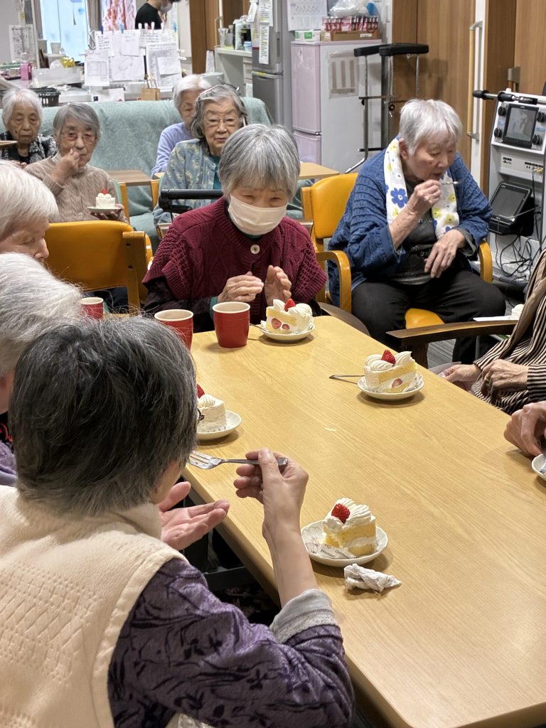 琴に合わせて声を出して歌い、お祝い🎊の🍰ケーキを召し上がり😋充実した時間を過ごして頂けたようです。