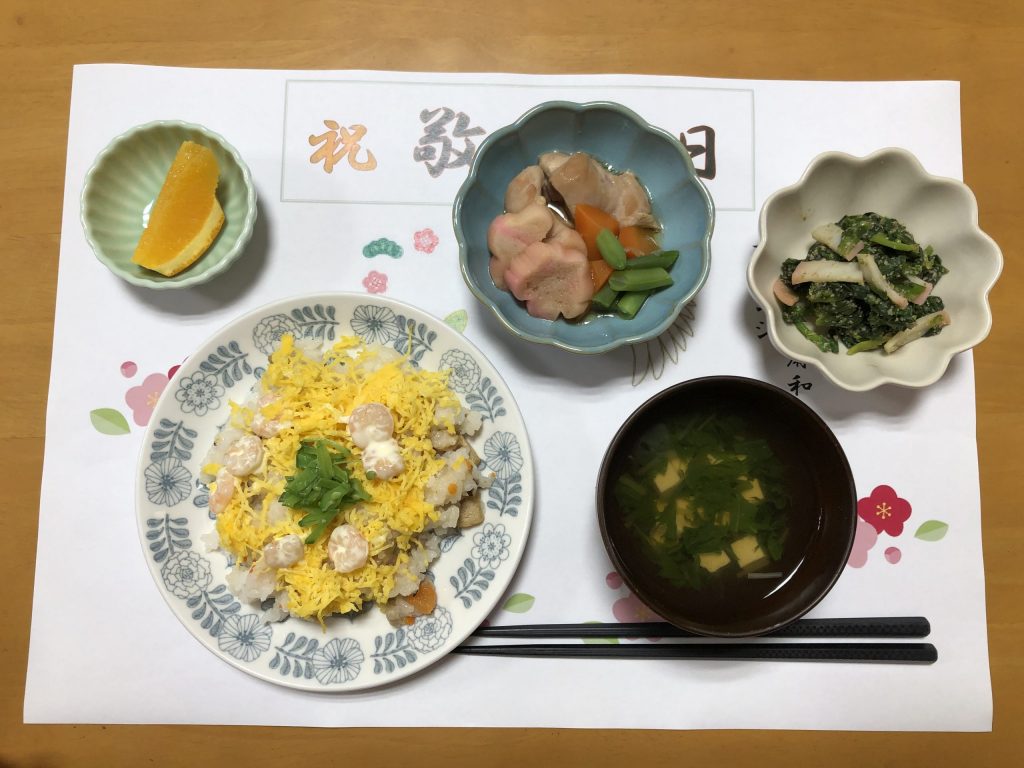 9/15は敬老の日で、ちらし寿司や煮物に舌鼓を打ちました。