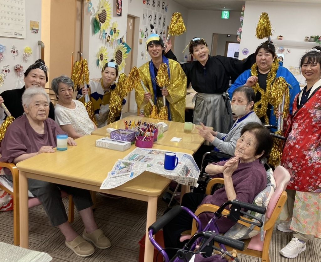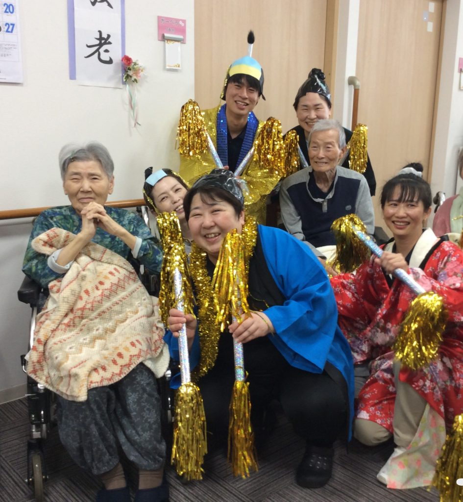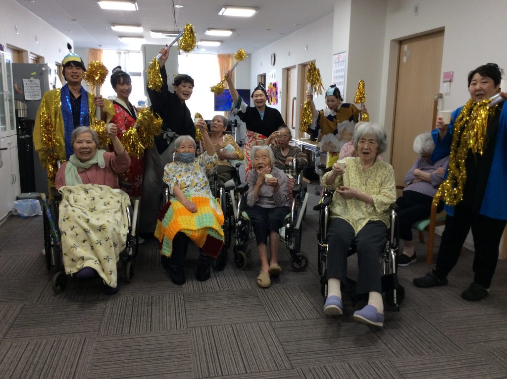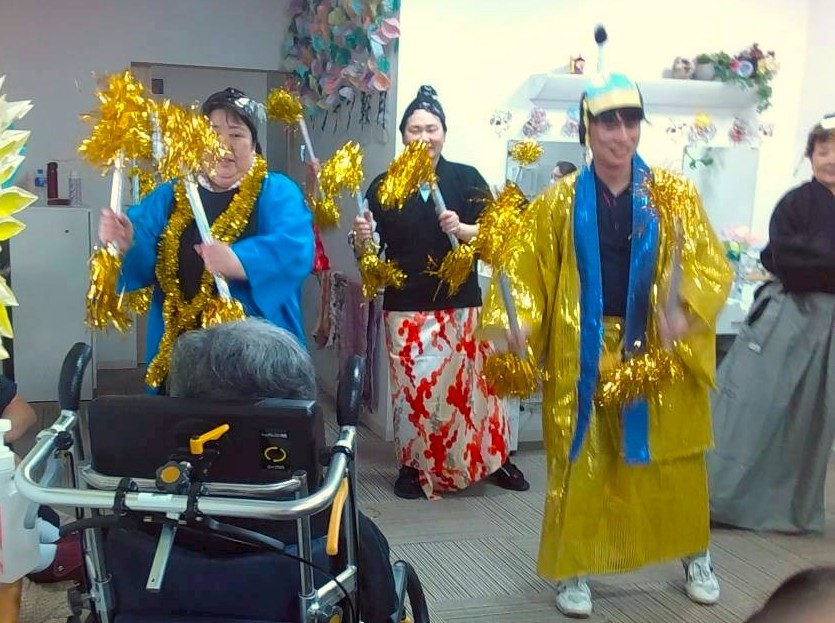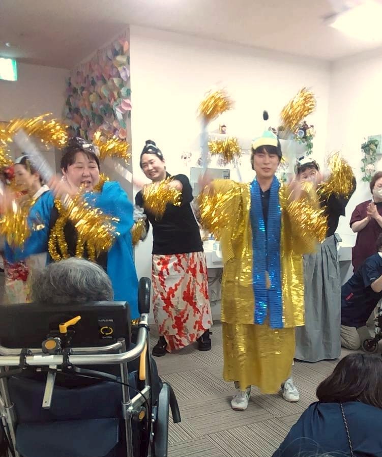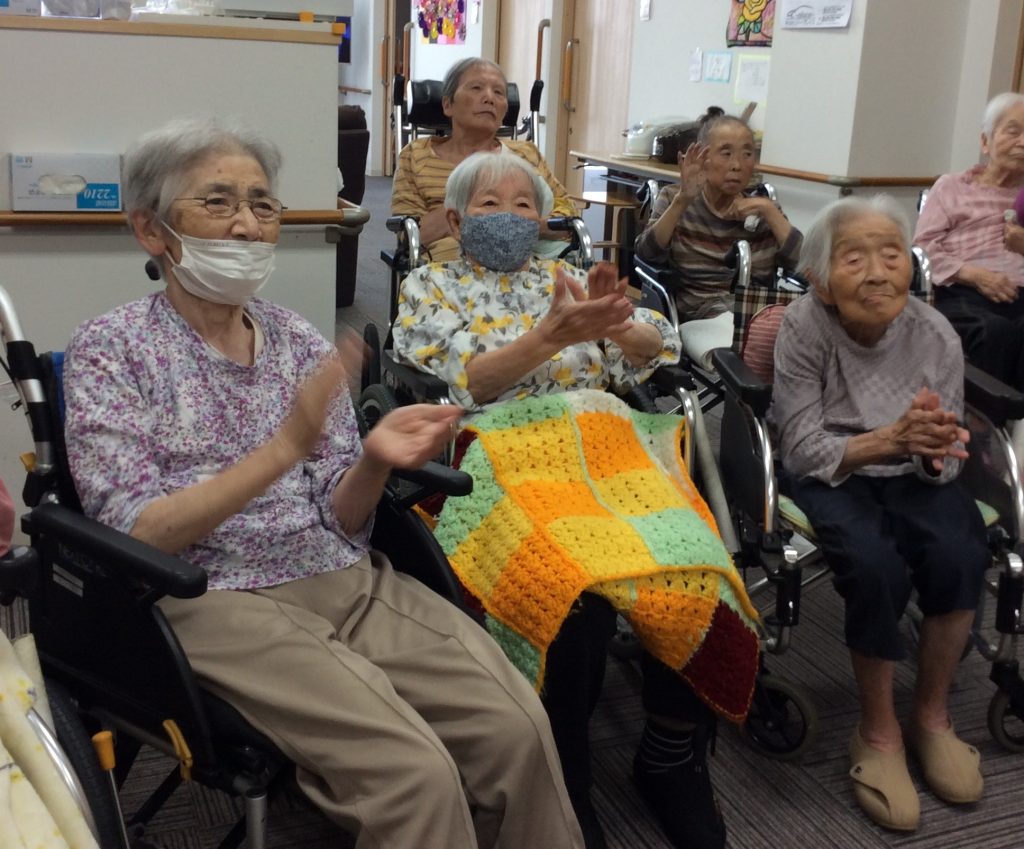 利用者様の皆様には手拍子👏やポンポンなどで一緒に楽しい時間を過ごし、