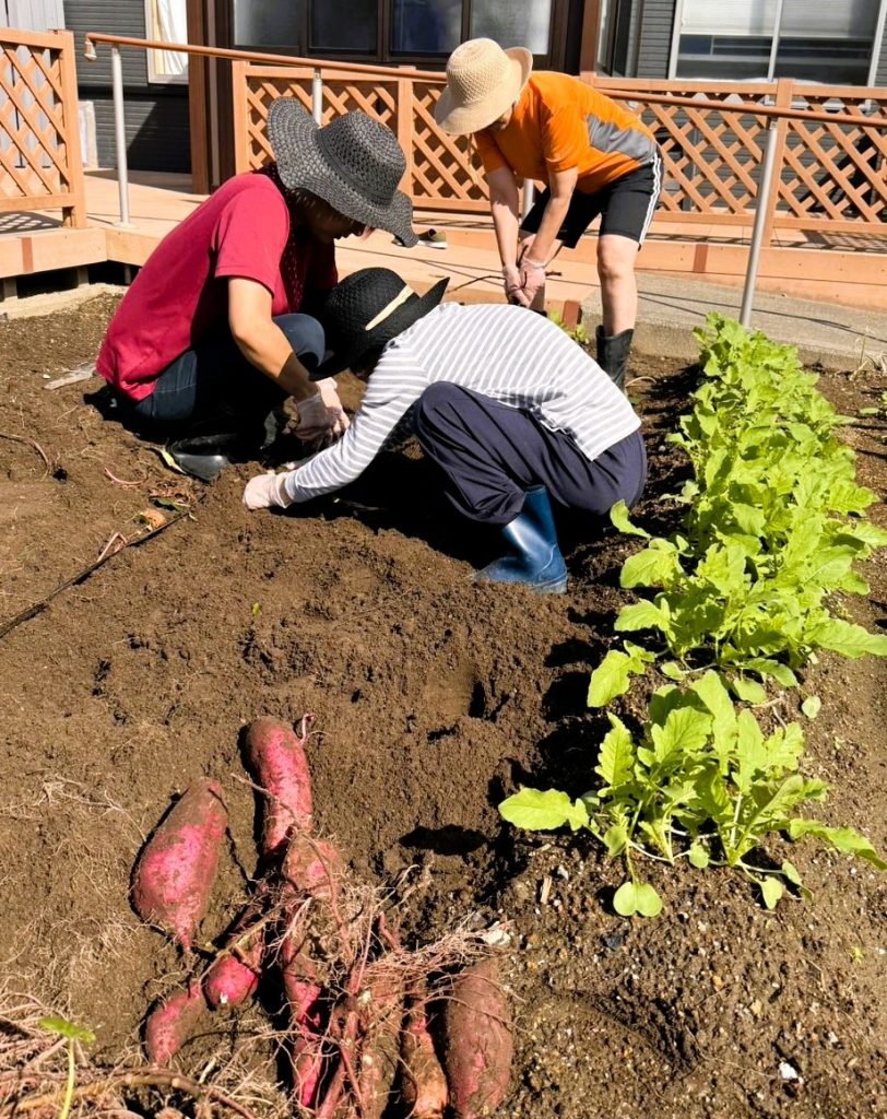 秋晴れの日に さつまいも掘りをしました。