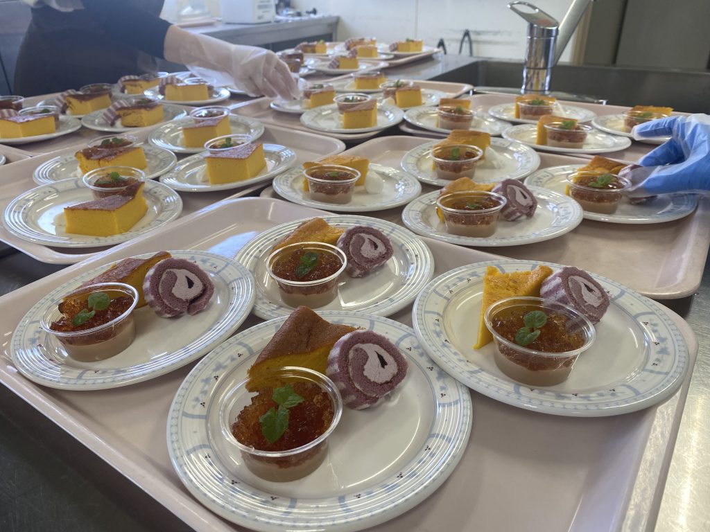 巨峰のロールケーキのみ既製品を使用し、後は職員の手作りです。