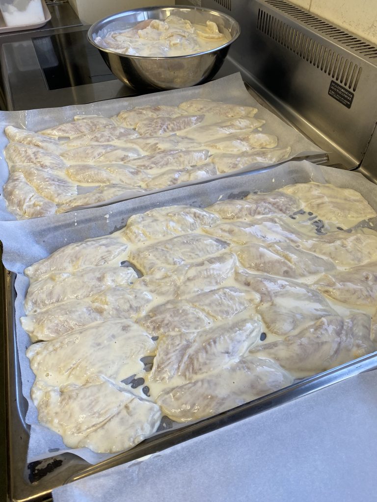 魚のピカタを焼く前の状態です。
