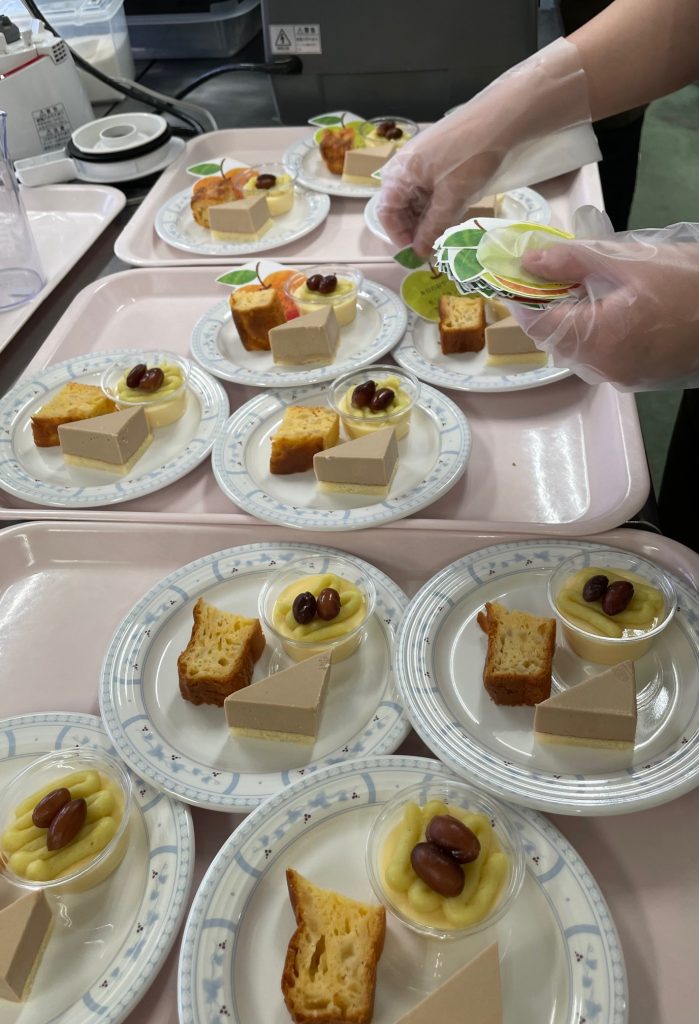 モンブランムース、さつまいもプリン、りんごのケーキ(ケーキが食べられない人はりんごゼリー)でした。