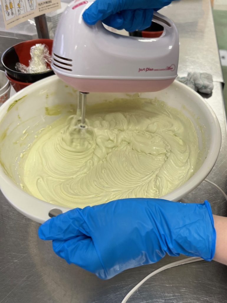 抹茶ホイップ製作中です。