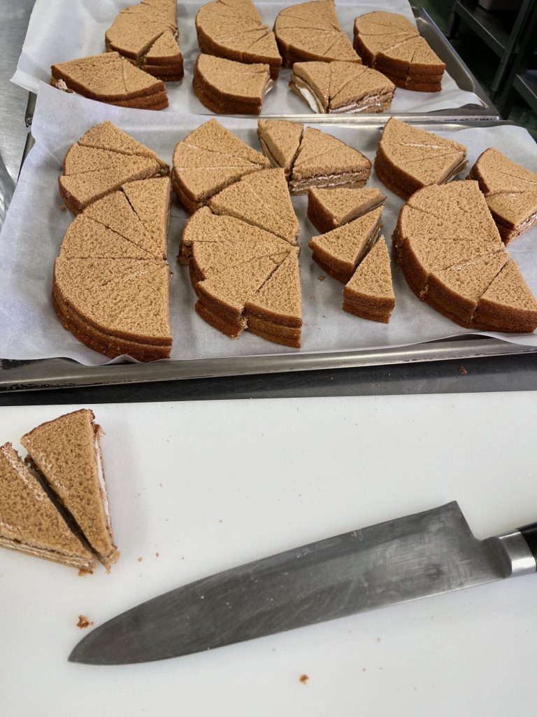 ティラミス風ケーキを作っています。 カットしているのは市販のコーヒースペシャルという商品です。
