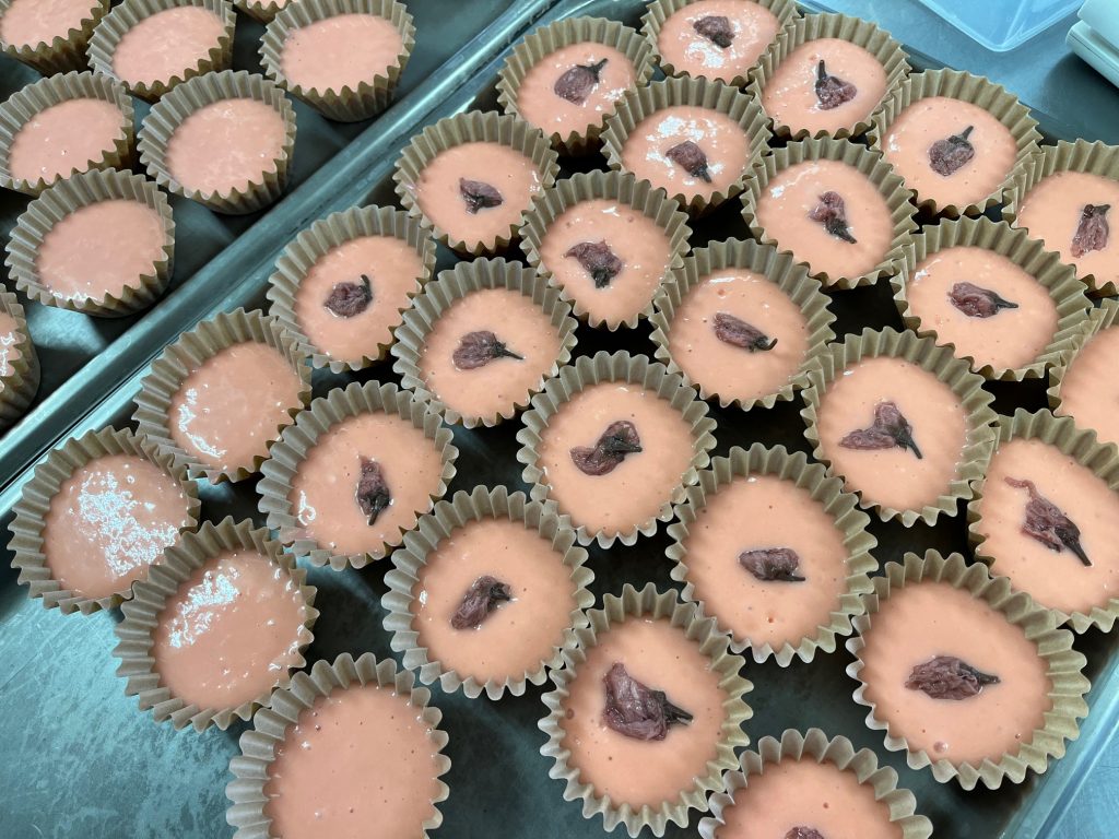 桜蒸しパンはピンクに色付けし、