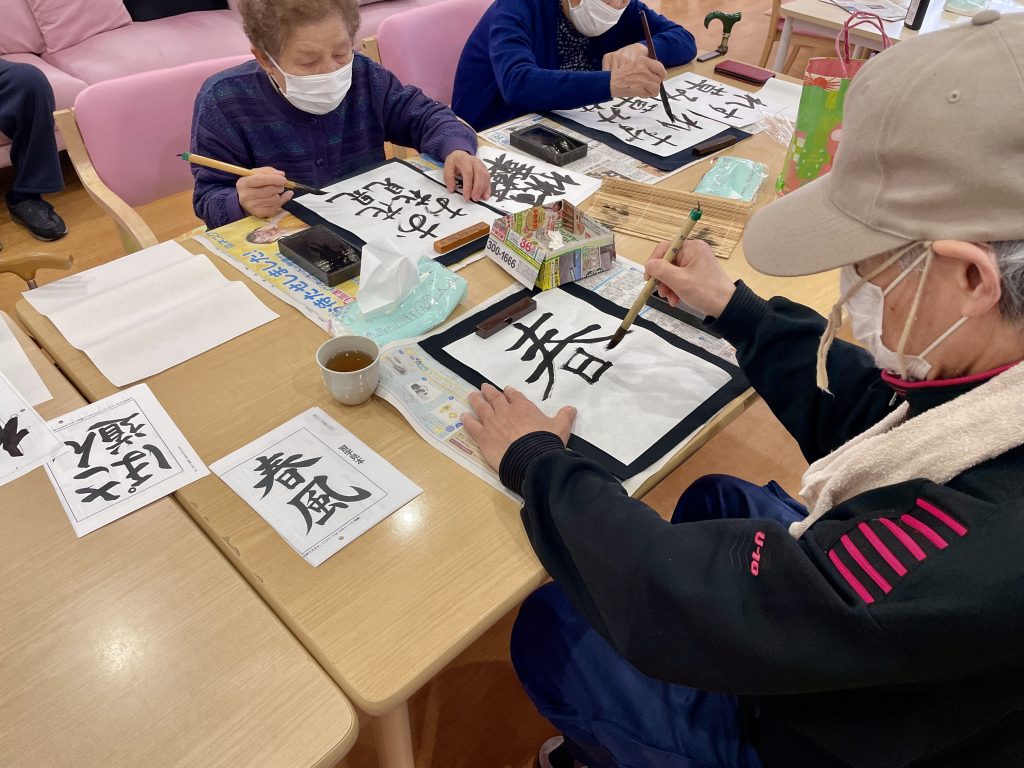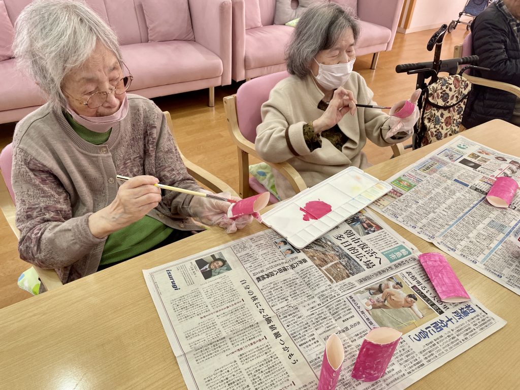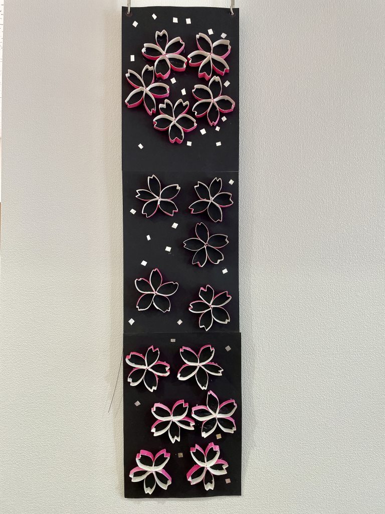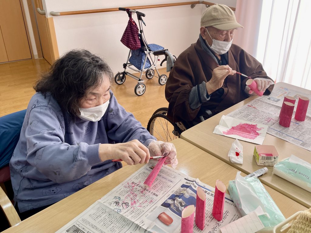 制作レクリエーションではトイレットペーパーの芯を再活用して桜の壁飾りを作りました。皆さんとても真剣に取り組まれ、素敵な壁飾りが完成しました✨